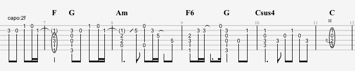 カポ2fでのキーCですが、原キーのDのままでも普通に弾けるとは思います。